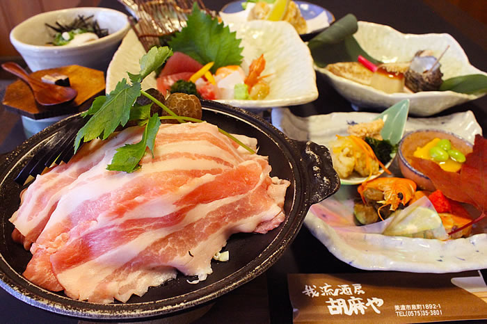 岐阜県美濃市のうだつの町並みにある、こだわり焼酎と毎日仕入れる鮮魚料理が自慢の「胡麻や」。